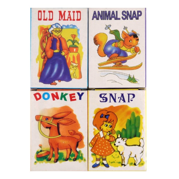 Mini Card Games Assorted travel sized card games. Approximately 5cm x 7cm 4 different games, Donkey, Old Maid and Animal Snap and Snap. 1 game will be supplied at random.sarah moreland