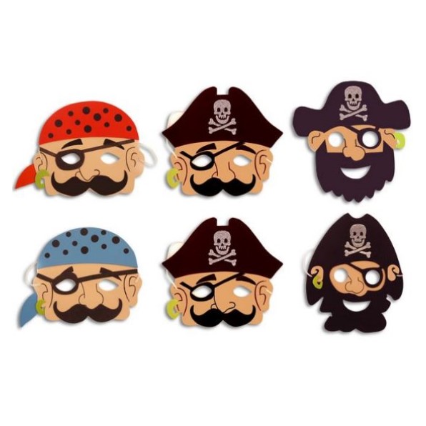 Pirate Mask Wear these masks to guarantee a party full of pirate adventures. Foam pirate masks with elastic. 6 assorted designs. 1 will be supplied at random.